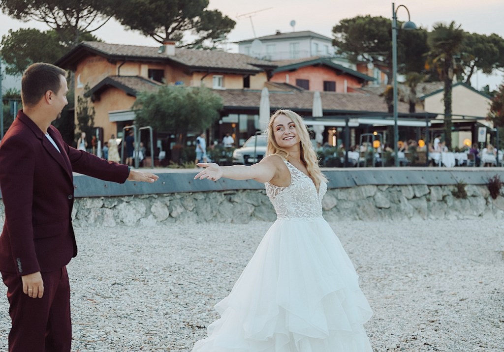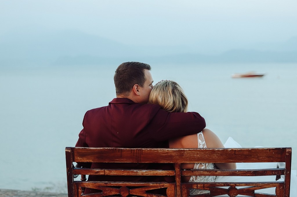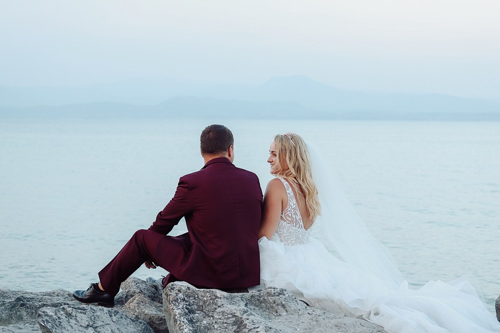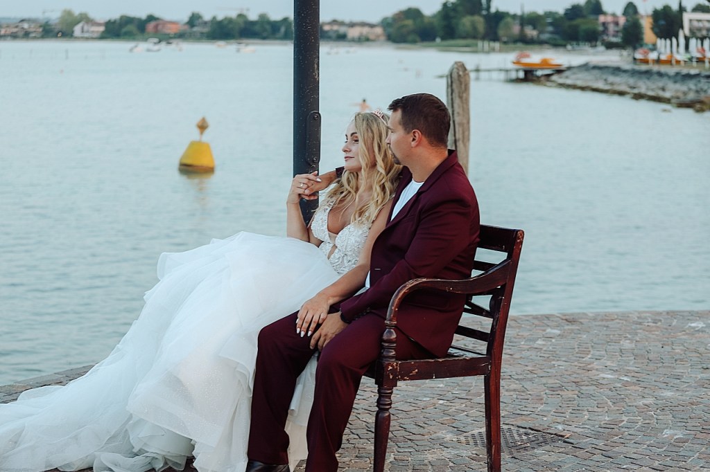 Wracając do ogłoszenia, Młoda Para szukała fotografa na sesję ślubną we Włoszech. Termin pokrywał się z moim urlopem na jeziorem Garda. Po wymianie kilku wiadomości, Para zdecydowała się przyjechać do miejscowości w której odpoczywałam:) Liczyłam na piękną „golden hour”, ale akurat tego dnia zbierało się na burzę. Pochmurne, lekko zamglone niebo nadało zdjęciom innego klimatu. Myślę, że bardziej oryginalnego:)